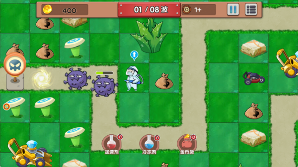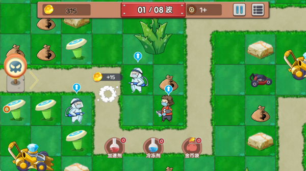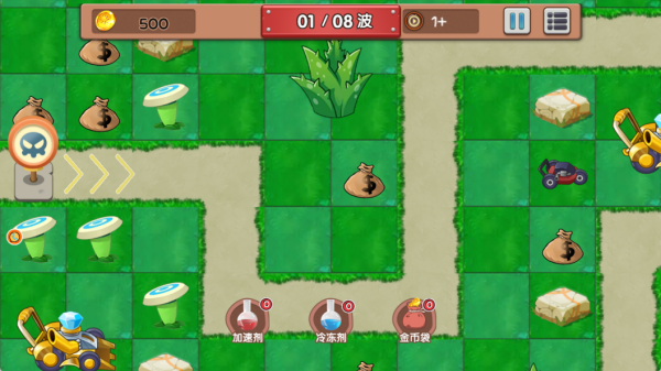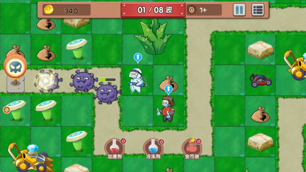 利用道具:在关键时刻使用道具,如加速建造快速形成防线,或范围伤害清除大量敌人。