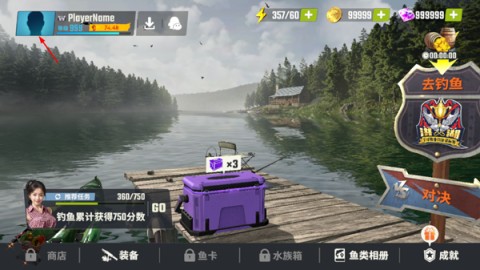 1、打开欢乐钓鱼大师,进入游戏后,点击左上角头像;