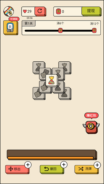 红包获取:通关后点击红包图标领取奖励,累计满0.3元即可提现至微信。