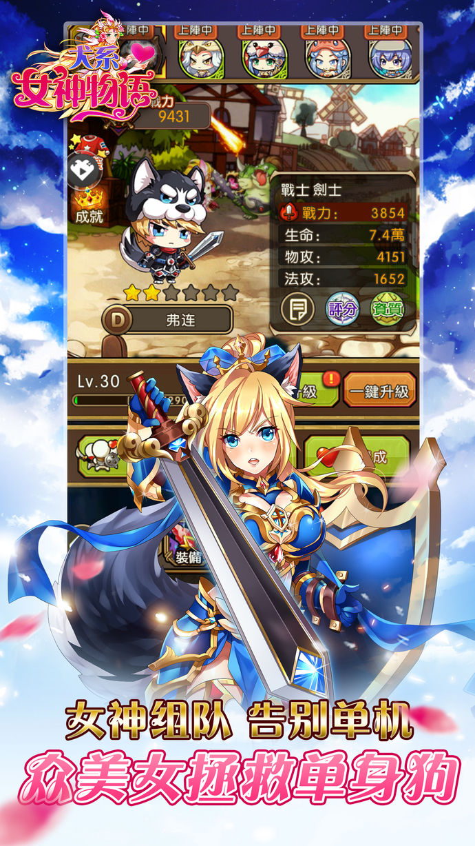 游戏以希腊神话为背景,融合西方魔幻元素,打造出一个充满神秘色彩的异世界。玩家将邂逅维纳斯、雅典娜等女神,她们以可爱狗狗为原型,拥有专属技能与成长路径。通过挂机养成、策略战斗,玩家可逐步解锁新剧情,体验从拯救女神到称霸异世界的完整冒险。
