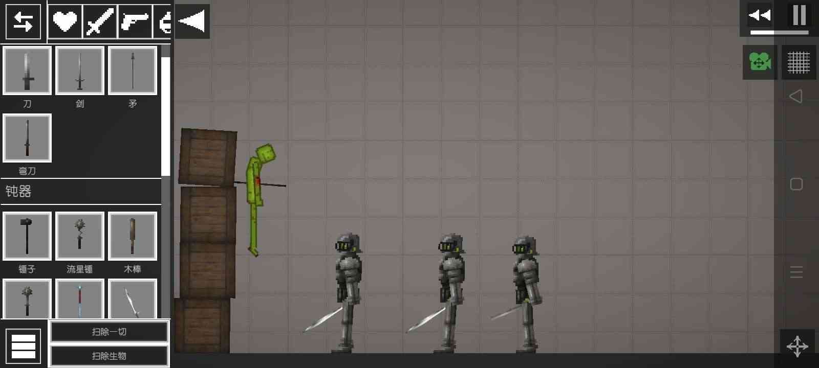 战斗系统:装备武器后点击攻击键,不同模组效果差异显著。例如,“光剑模组”可切割场景,“火箭模组”能发射爆炸弹。