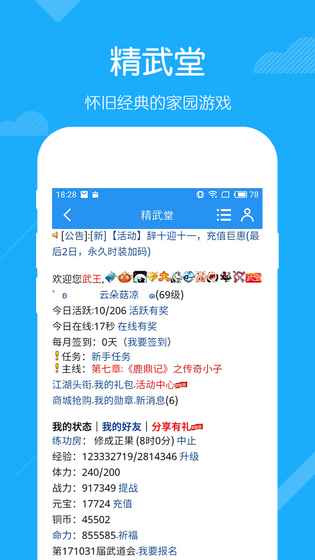 在此处,涵盖修炼、武功、装备、比武、竞技场、征战、武道会、帮派、修真、宠物、法宝、转职、皇宫等丰富多样的玩法,等待你前来谱写属于自己的江湖传奇!