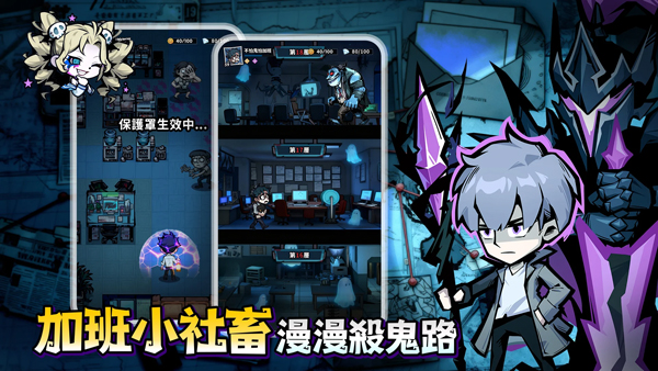 游戏以现代都市为背景,玩家从普通职员逆袭为守夜统帅,带领英雄团队抵御怪物入侵。每轮战斗需在办公室场景中部署防线,利用英雄技能与地形优势应对不同敌人。剧情与玩法紧密结合,通过主线任务与随机副本揭开异界入侵背后的秘密。