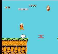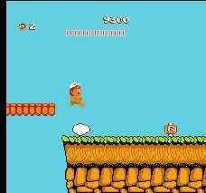 4. 关于隐藏蛋 游戏的特定位置藏有隐藏的蛋,在这些位置跳跃便会出现(难道是下蛋?),隐藏蛋里全是宝物。虽说它们看不见,但要找到也不难。在游戏行进过程中,要是发射子弹时发现子弹在中途莫名消失,就可以到这个位置跳跃获取隐藏蛋。 5. 无限接关法 在第一区域第一小关的最后崖端起跳,获取隐藏宝物——蜜蜂。此后在游戏中途角色死亡,标题画面出现“GAME OVER”时,按下任意方向键和START键,就能接关继续游戏。