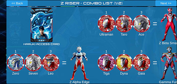 勋章图鉴:收录超过30种奥特勋章,涵盖昭和系、平成系、新生代奥特曼,玩家可查看勋章背景故事与组合效果。
