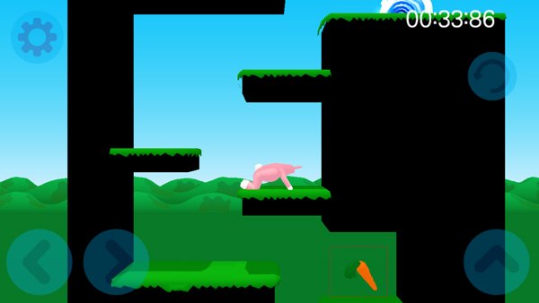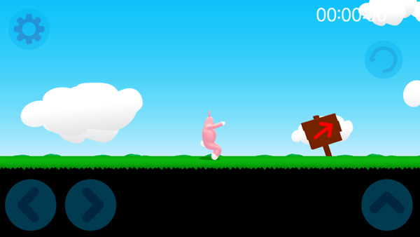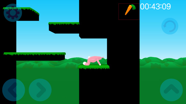 3、正式开启关卡挑战,首先来熟悉一下流畅的操作。左下方的左右按钮用于控制兔子人移动,右侧是跳跃按钮。