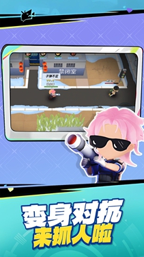 场景互动性:地图分为多个区域,玩家可变身家具、装饰品等场景物件隐藏,或利用加速、隐身道具逃脱追捕。