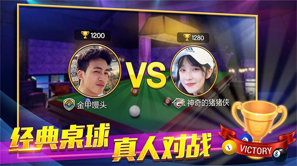 《欢乐桌球》是一款高度还原现实桌球规则的休闲竞技手游,玩家可体验经典8球模式,与全球玩家展开实时对战。游戏通过三维图像渲染技术构建沉浸式场景,支持手机、平板等多平台畅玩。其核心玩法围绕“竞技对战+社交互动”展开,既保留传统桌球的策略性,又通过俱乐部联赛、直播弹幕等功能增强玩家间的实时互动。