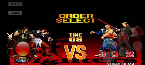1、先安装本站提供的拳皇97手机版游戏,完成投币操作后确认开始游戏,接着挑选我们喜爱的英雄
