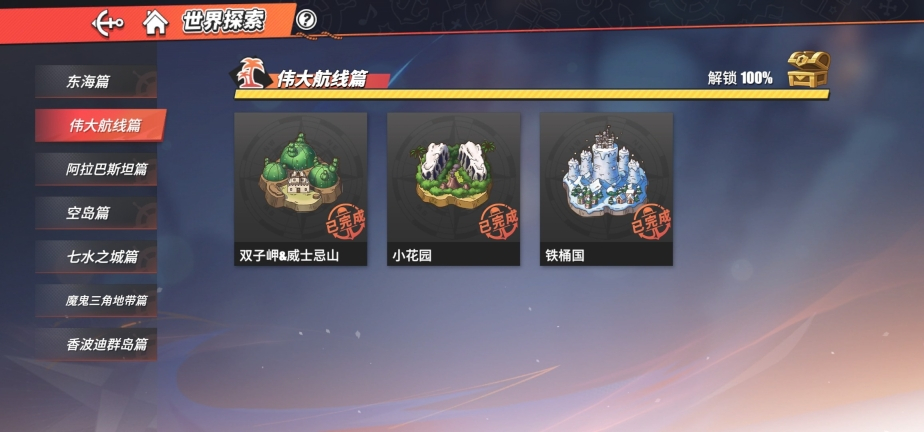 还原度max,精细到每栋房屋,让玩家体验一个真实立体的航海王世界!完整海域地图、原版声优配音,仿佛裸眼穿越航海王世界,无论是阿拉巴斯坦的漫天黄沙,还是七水之城的粼粼波涛,尽在热血航线!