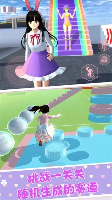 2、在这款樱花校园恋爱派对游戏中,你将化身为一名普通高中生,在游戏地图里开启跑酷玩法。