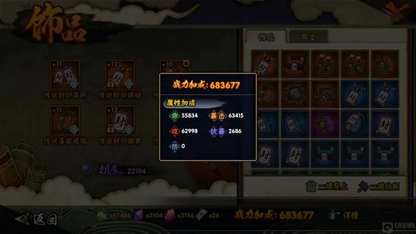 6、忍具与饰品的强化,这两个是提升战斗力最快的,只要你有足够多的材料,强化一下战斗力直接起飞。