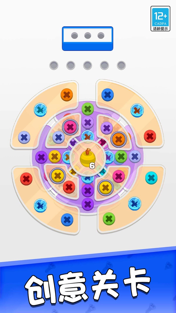 4、关卡的难度将持续递增,钉子的颜色变得更为复杂多样,玩家需在限定时间内迅速收纳全部钉子。