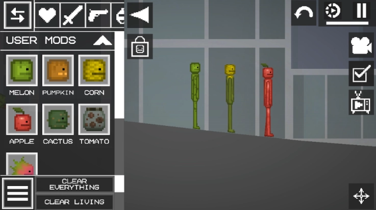 在游戏中,玩家可以扮演“造物主”或“实验者”。你可以放置角色(甜瓜人)、各类物体,并观察它们在重力、碰撞、关节连接等物理规则下的反应。从简单的堆叠到复杂的机械联动,从宁静的建造到爆炸性的混乱,一切皆由你决定。