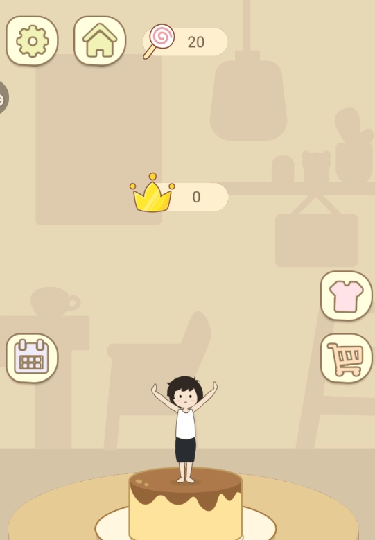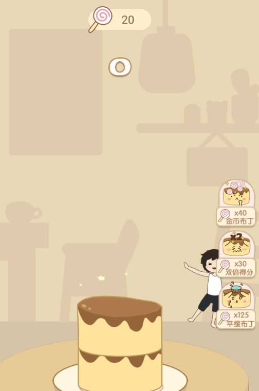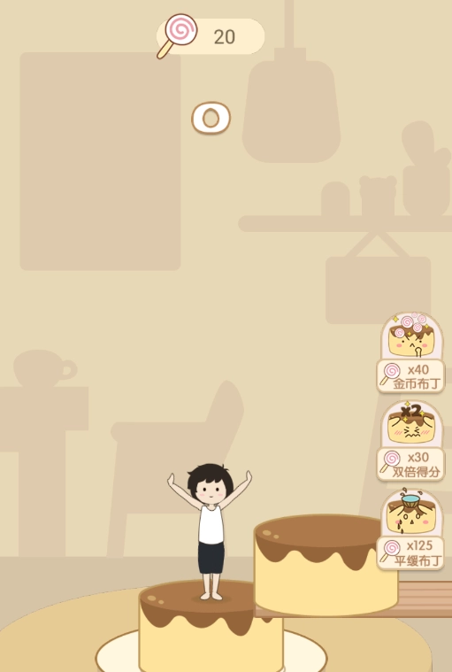 4、考验一下你的反应速度,点击屏幕,让角色跳到蛋糕上。要是你能精准抓住时机,就能跳到蛋糕正中央,从而获取更高的分数。