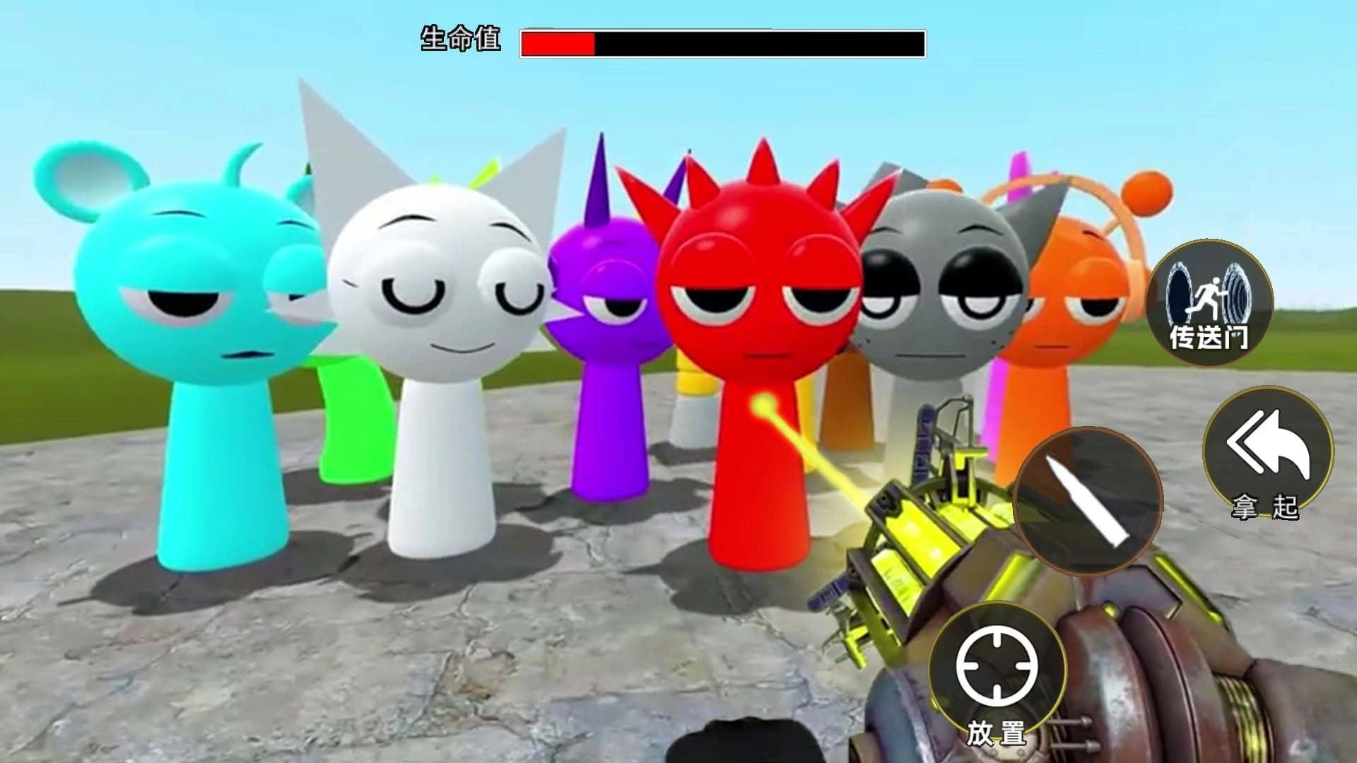 基础玩法:玩家进入游戏后,可选择官方地图或创意工坊下载的自定义地图。通过工具枪拾取、移动、旋转物体,或使用物理枪施加力场(如推动、拉扯)。例如,在“沙盒建造”模式中,玩家需利用方块堆砌房屋,并设置NPC巡逻路线。