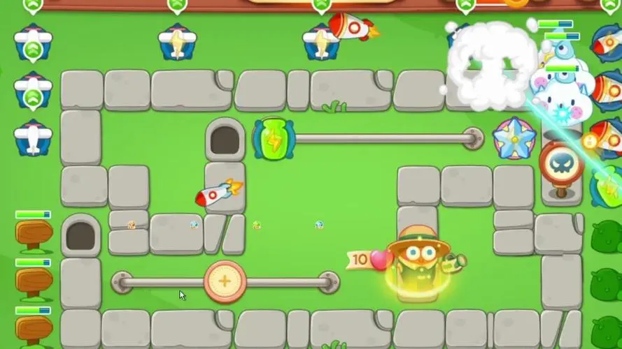 炮塔的合理运用:挑选适配当前关卡的炮塔搭配至关重要。比如,借助太阳花实现群体伤害,依靠瓶子炮提升攻击速度,利用魔法球完成单体高额伤害输出,通过月亮达成群体减速效果等。