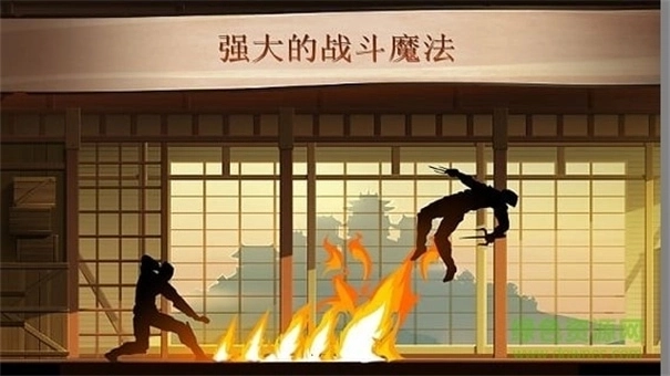 剪影美学与东方韵味:角色采用黑色剪影设计,搭配竹林、古庙等日式场景,营造神秘武术氛围。背景音乐由尺八演奏,古典旋律与战斗节奏相得益彰。
