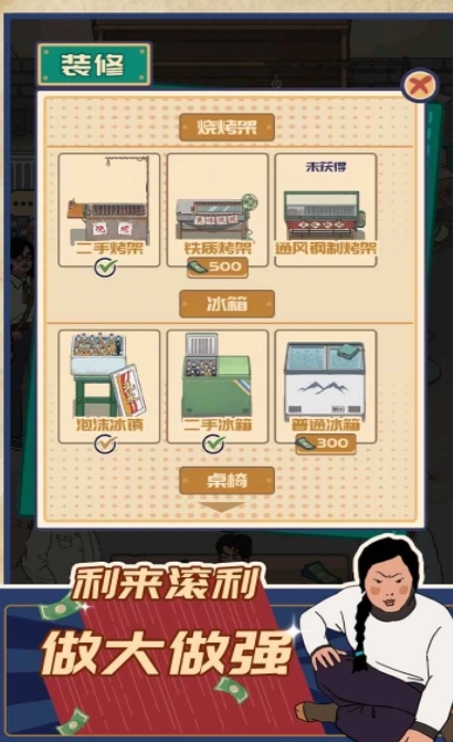 店铺升级:随着游戏进程,玩家可以使用金币升级店铺,提升店铺的容纳量、货架数量和顾客流量。