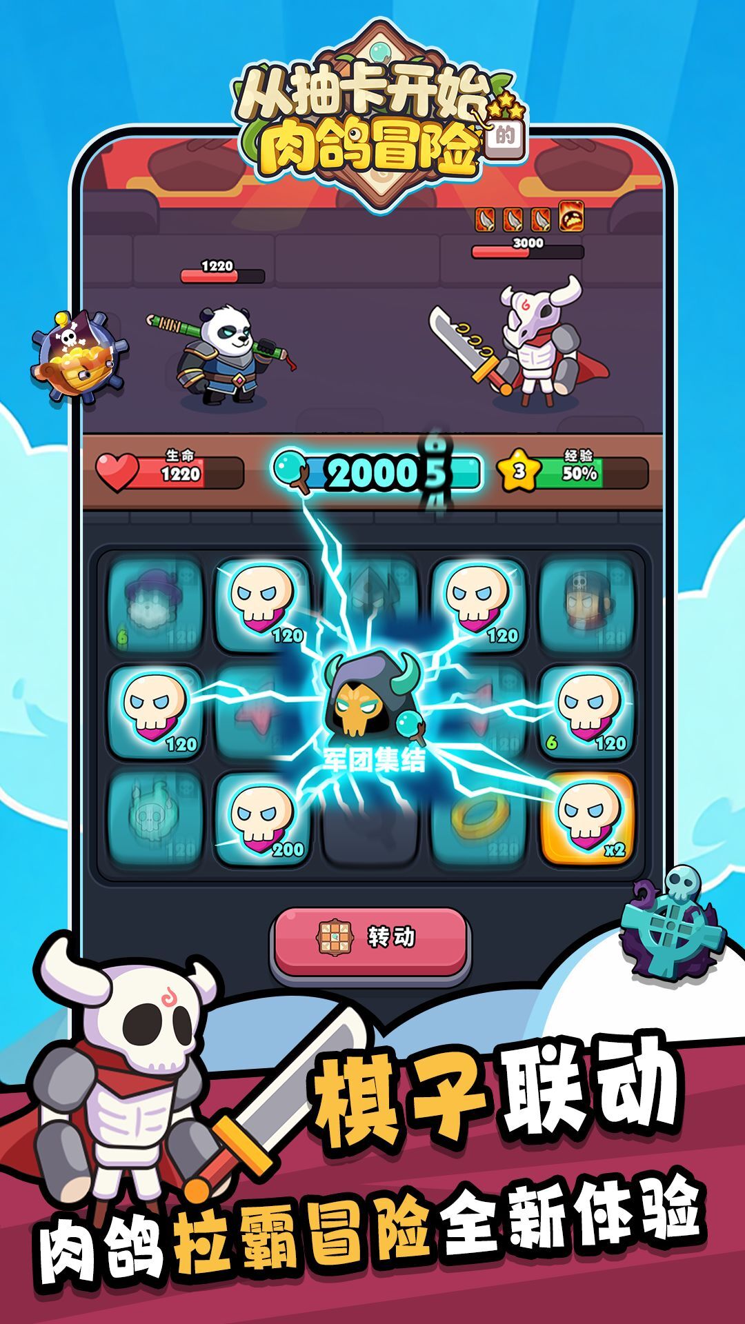 转盘能量机制:转动转盘后,棋子随机排布并获得基础能量,触发特殊效果(如暴击、连击)可额外获取能量。能量条满后自动为技能卡充能,技能释放条件清晰,玩家可专注策略搭配而非复杂操作。