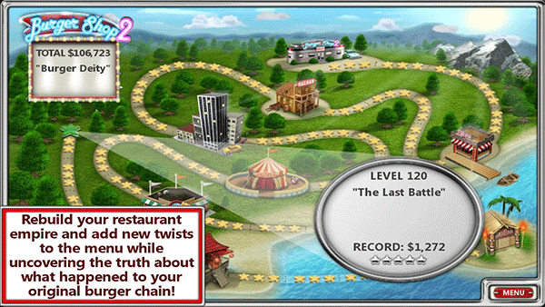 《汉堡商店2》是经典模拟经营游戏《汉堡店》的续作,玩家扮演失忆的汉堡店老板,从垃圾箱旁醒来后需重建餐厅帝国。通过制作汉堡、薯条等超100种美食吸引顾客,逐步揭开前作餐厅连锁店被毁的真相。游戏融合时间管理、剧情解谜与经营策略,支持故事、挑战、放松、专家四大模式,提供120个故事关卡与120个专家关卡,满足不同玩家的需求。
