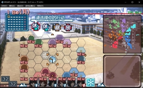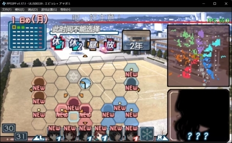 这个游戏的事件推进逻辑是按方格状的关联方式展开的——每个事件会延续到下一个事件。先看第二张图:屏幕中间我选定了一个事件,左上角的绿色方块标注着该事件的持续天数;右侧有四个可选时间段,而游戏全天共划分六个时段:早晨上学路→上午1→上午2→中午→放学后→晚上。其中上学路和晚上属于强制触发的固定事件,不消耗玩家的操作时间,因此一天里玩家能自由选择事件的时段是上午1到放学后这四个。事件可选择的时段会用红点标记,每选一个事件或直接跳过,就会自动进入下一个时段。再回到我选的这个事件:它的有效选择周期是1-3天,且当前处于上午1时段时,该事件允许在放学后的时段选择。整个游戏流程共41天,最后一天是圣诞节,玩家必须在当天选择一个结局来收尾。