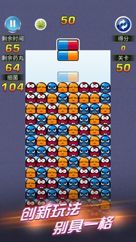 3. 游戏模式:游戏设有多种可供玩家挑选的模式,涵盖普通模式、限时模式与解谜模式。在普通模式中,玩家得清除掉所有细菌方可顺利通关;限时模式要求玩家在限定时间内消灭全部细菌;而解谜模式的每一关都经过了精心设计,玩家只能借助1到2个关键药丸来完成关卡。