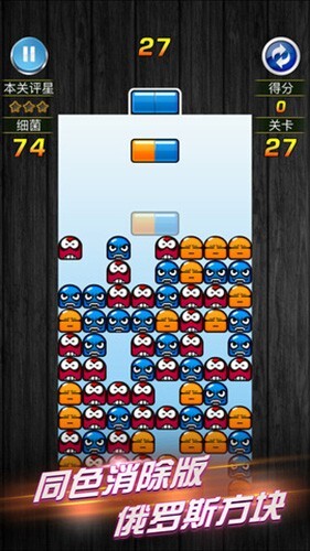 2. 游戏目标:本游戏的核心任务是清除各关卡内的所有细菌。玩家需借助投掷药丸达成此目的,一旦有四个同色的药丸或细菌相连,它们便会被消除。