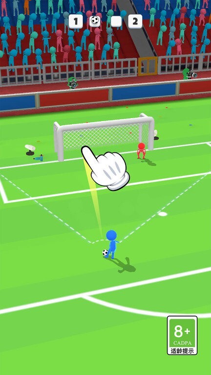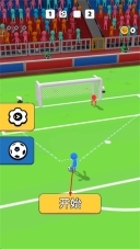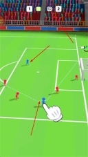 2、游戏关卡过程内,拖动规划蓝色小人射门路线,避开红色防守,尝试直接进球。