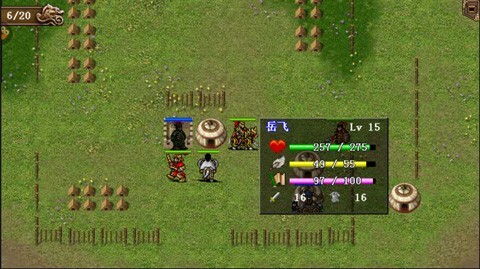 选择“任由汤怀、张显出击”,击败除恶贼外的3个贼兵后选“饶”。等恶贼返回时,选择听其解释,再击退除恶贼外的3个贼兵,之后让汤怀移动到神像的左上那格,即可获得柳叶甲。第三回合要堵住南门,不能放敌军进入。四个城门都绝不能让任何一个敌人闯入,否则百姓会全部陷入混乱。(岳飞需设法触发特技,而且之后每一关都要想办法触发特技,这一点同样与岳银瓶的五围能力相关)