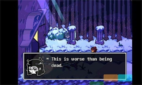 战斗:躲避模式的设计可能变得抽象、混乱或缺乏逻辑,以反映角色内心的崩塌。一些战斗的胜利条件不再是击败敌人,而是“坚持到对话结束”或“找到放弃战斗的理由”。