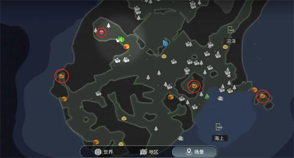 2、小象玩偶要拿到的话,得把初始左侧的精英怪物击败才行;小熊玩偶需要打开地图左侧藤蔓后面藏着的箱子;兔子玩偶在初始营地下方那处悬崖的高处位置;猫咪玩偶则在右下角的岛屿上。