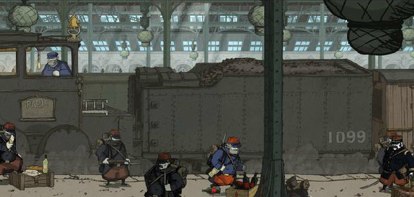 4、下一个场景我们需要登上列车,不过梯子被士兵挡住了。这名士兵旁边有一支军乐队,按照“2-4-3-1”的顺序和乐手交谈,士兵就会自己离开【收集品5】。最后到车顶往左走,拉动另一个链条机关就能赶走另外两名士兵。