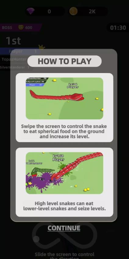 蛇的成长伴随能力解锁(如体型增大、技能升级),形成清晰的成长路径。游戏以“成为蛇王”为终极目标,结合阶段性奖励(如积分、称号),激励玩家持续投入。