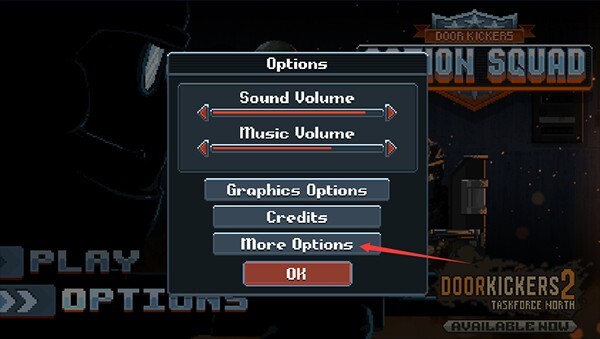 1、安装破门而入:行动小队后,进入到主页面选择“options”。