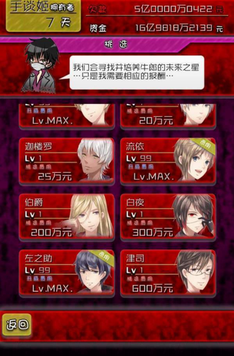 多线互动:与性格迥异的牛郎角色深度交流,触发隐藏剧情解锁专属羁绊。玩家可通过提升角色好感度,解锁特殊对话和剧情分支。