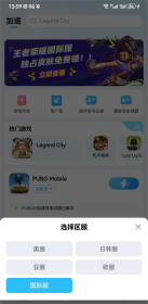 1、首先需要准备一个加速器,然后在加速器界面选择【日韩服】,因为锁区严重,不选亚服要好一点;