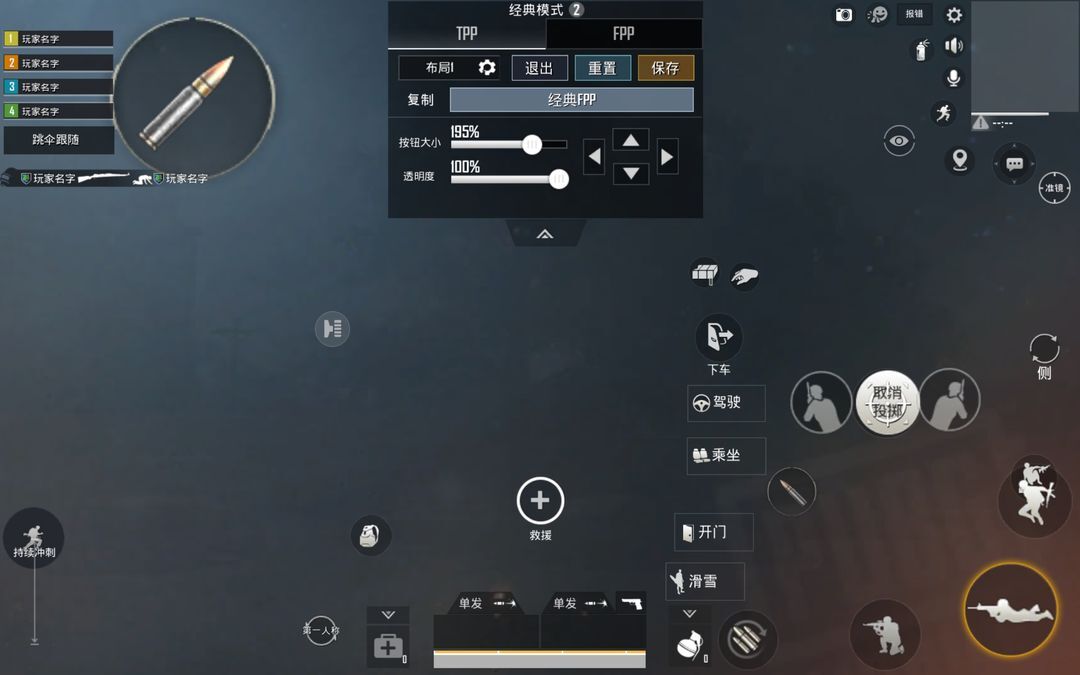 接下来要讲的是四指操作,和三指相比,四指多了一个右上角的开镜键,这样右手大拇指就能空出来控制左右探头,用出摇摆枪法。它的操作指法是开镜、开火、探头、走位这些动作全部同步进行,一气呵成,没有丝毫拖沓,这就是四指和三指最主要的不同之处。