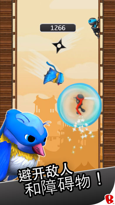是一款节奏明快的忍者攀爬游戏,玩家将操控不断向上奔跑的忍者,在过程中灵活躲避重重障碍,击败各类拦路敌人——比如愤怒的甲虫、古怪的蛇、邪恶的巫医、时髦的猴子、疯狂的黄蜂、蜂箱、敌对忍者、海盗、炮弹、恼怒的海怪、愤怒的鹦鹉等,挑战自己能攀登到多高的高度。