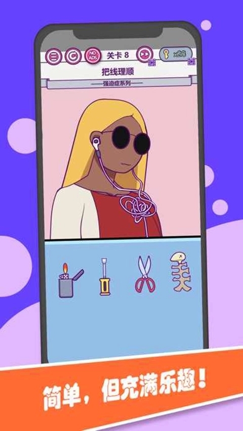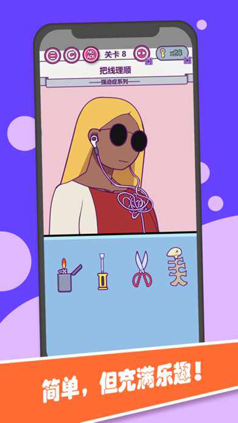 支线挑战:包含强迫症系列、生活趣事等主题关卡,如“如何快速回复消息”“整理杂乱耳机线”等贴近现实的谜题。