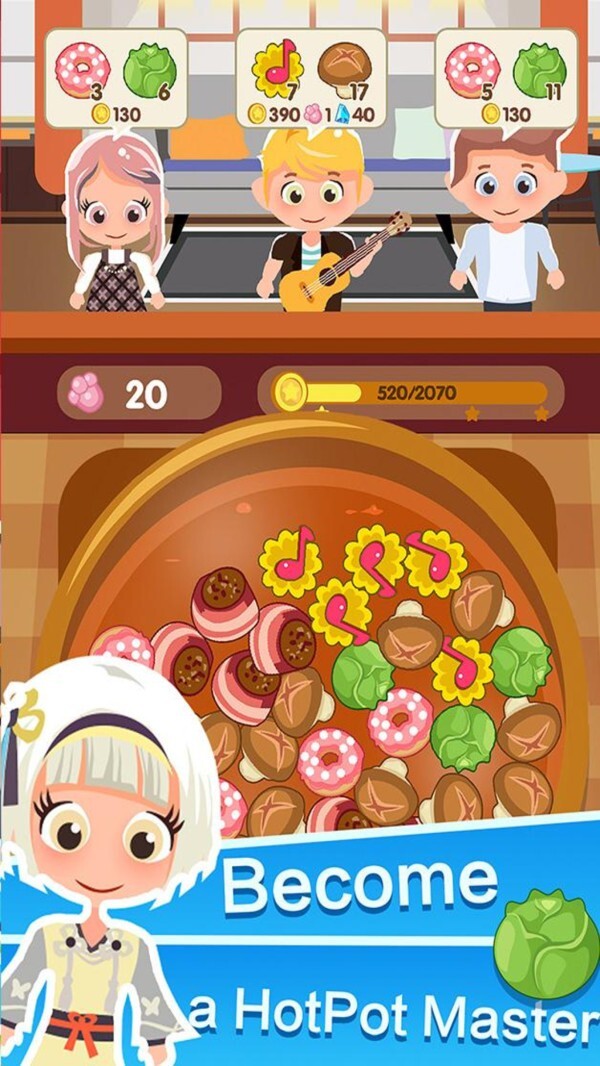 这款游戏名为串串火锅,顾名思义和美食火锅相关。游戏里,玩家得通过消除来获取各类奖励,为顾客制作可口的串串。玩法十分精彩,不仅有经典的消除模式,还融入了经营元素,玩起来趣味十足,感兴趣的朋友不妨来体验一番。