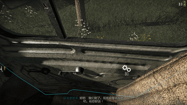 5、到达边境哨站后,玩家就可以在这里点击“E”键来打开车门下车了;