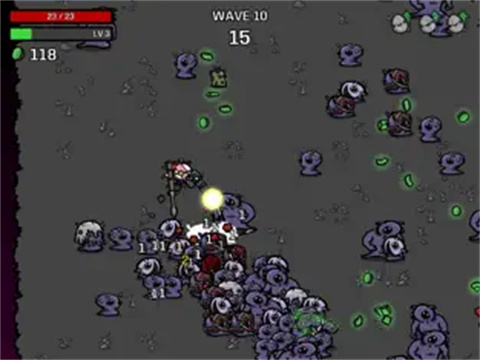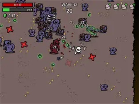 前期多刷新拿武器,攻速和伤害全靠武器叠,中期叠起来了来点生命窃取,基本上就可以怪堆洗澡了,完全不需要操作,怎么爽怎么来。