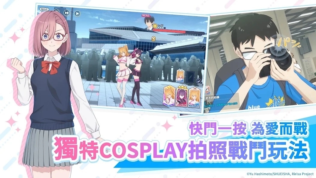 cosplay战斗系统:通过展示不同姿势(如经典姿势、专属姿势、多人共同出角)打动对手与观众,姿势越华丽,评分越高。