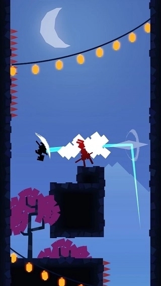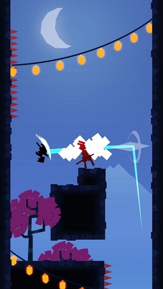 基础操作:按住屏幕滑动至目标方向后松手,忍者将朝该方向冲刺跳跃;空中再次滑动可触发二段跳。
