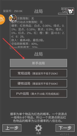 《老鼠大冒险》是一款文字类策略游戏,采用2D像素画风并搭配动态音效。尽管游戏以文字为核心表现形式,但依然能为玩家带来十足的沉浸感。在游戏中,玩家将化身为一只小老鼠,核心目标是收集各类资源、巧妙躲避途中的危险,并最终实现安全撤离。游戏内的所有操作指令与反馈信息均通过文字呈现,无需进行复杂的操作或深度思考,只需点击屏幕即可轻松完成游戏流程,堪称放松身心的绝佳选择。