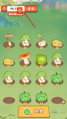 1、进入游戏后,点击下方按钮,系统会依据当前作物的最高等级,随机发放一颗作物。
