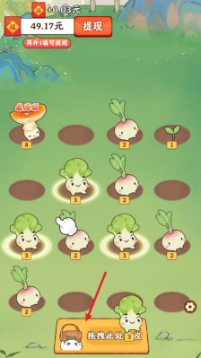 2、把相同的作物拖动到一起重叠,就能合成并得到更高级的作物。