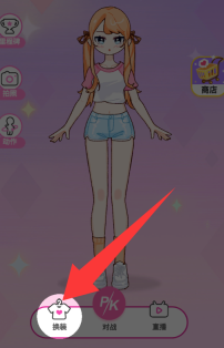 3、点击红色箭头那个换装进去换装。