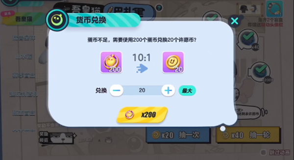 2、在抽之前需要把200个蛋币兑换20个许愿币。